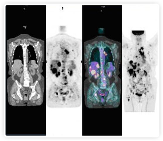 到目前為止,放射腫瘤學(xué)中(使用的圖像主要是結(jié)構(gòu)性的,而PET圖像可以提供生物學(xué)信息。通過使用注射示蹤劑,例如18-FDG,PET可以描繪腫瘤的代謝活性,使其“點(diǎn)亮”。(FDG是用于可視化癌癥代謝的最廣泛使用的示蹤劑。與正常組織相比,腫瘤細(xì)胞保留更高水平的FDG。)不同的PET示蹤劑可以識別腫瘤的不同生物學(xué)特征,例如特定生物標(biāo)志物抗原(例如,PSMA)或甚至探測免疫系統(tǒng)本身(例如,PDL1表達(dá)或活化的T細(xì)胞)。