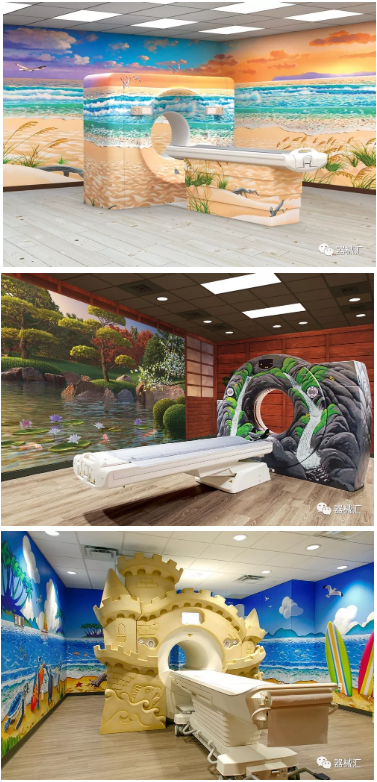 Dream Think Imagine(DTI)和Character Farms都是提供此類產(chǎn)服務(wù)的公司,他們專門制作3D外觀,像皮膚一樣包裹在影像設(shè)備上,把設(shè)備變成幾乎認不出來的物品。無論是為兒童建造的城堡主題,還是為成人營造的顏色和照明交互的良好氛圍,都可以幫助患者在醫(yī)療檢查中保持更為平靜的情緒。