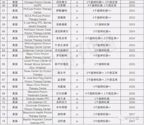 附:全球已運(yùn)營質(zhì)子重離子治療中心匯總表(截至2018年7月)