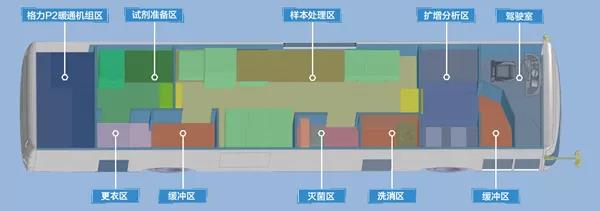 據(jù)公告顯示,圣湘生物移動P2+核酸檢測車長12米,按照生物安全二級以上(P2+)實驗室標(biāo)準(zhǔn)打造,設(shè)置了試劑準(zhǔn)備區(qū)、樣本處理區(qū)、擴增分析區(qū)和滅菌區(qū)等四個主要區(qū)域。單臺車的檢測能力可達(dá)5萬人份/天(10混1),突破了以往檢測車的人次上限,并且可以隨到隨檢,大大縮短了民眾到醫(yī)院或核酸檢測點的距離,減少了就診過程中對人群的接觸。