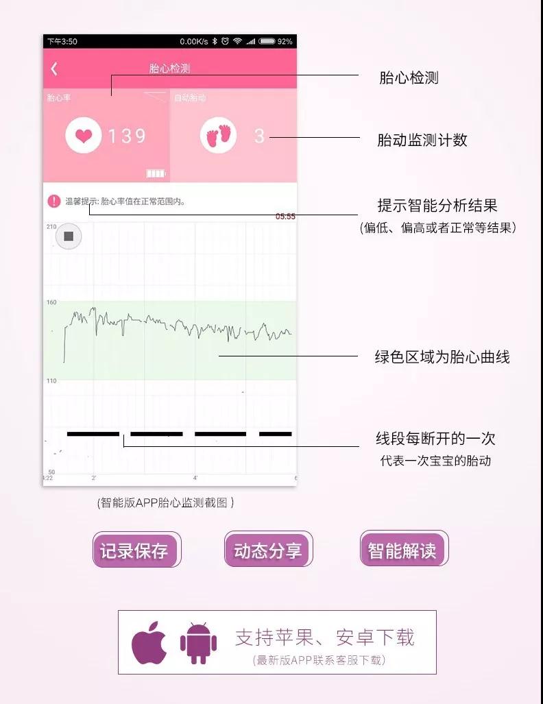 胎心和胎動(dòng)是胎兒生命體征的重要表現(xiàn),胎心胎動(dòng)出現(xiàn)異常,一般預(yù)示胎兒目前遇到了困難或者危險(xiǎn)。由于胎盤臍帶因素,如臍帶繞頸、胎盤供血不足和孕婦自身因素(如妊娠高血壓、身體過于勞累等),都可能造成胎兒宮內(nèi)缺氧,進(jìn)而影響胎兒正常生長(zhǎng)發(fā)育甚至危及生命安全。