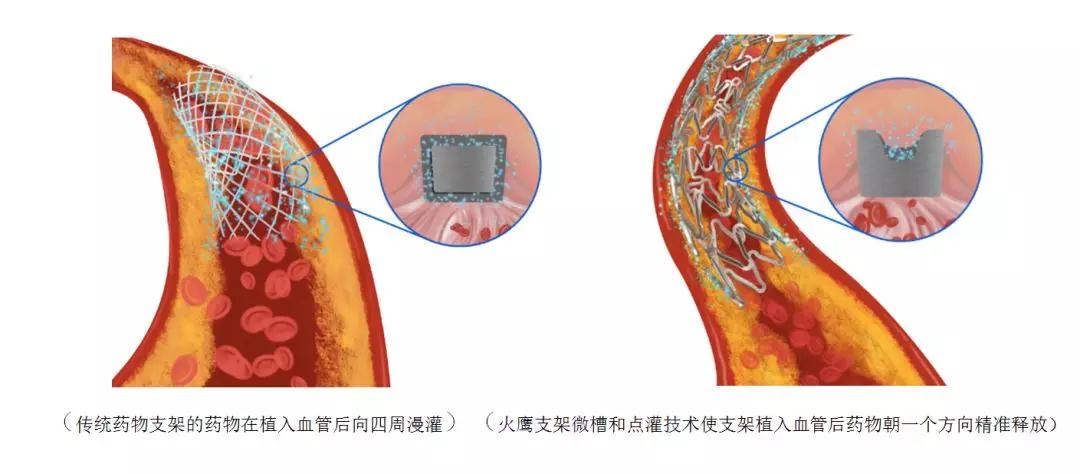 怎樣把藥物完美地“保存”在支架上?經過反復設計和比較,火鷹研發(fā)團隊歷時15年,選擇并達成了技術上最難實現(xiàn)的一種方案——微槽包裹藥物,即在金屬支架表面用激光刻槽,再把藥物灌入槽內。和傳統(tǒng)技術的區(qū)別在于,刻槽可防止涂層在輸送過程中脫落,藥物不會流失,且藥物抵達血管病變區(qū)后,能通過固定的槽位精準釋放,大幅提高了有效性,也避免了浪費。