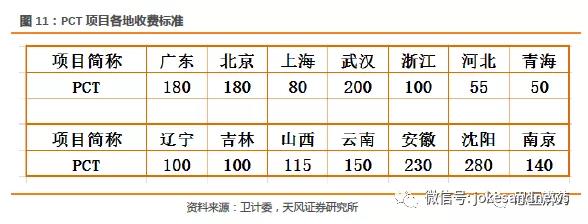 按照購(gòu)買力平價(jià),PCT項(xiàng)目在中國(guó)收費(fèi)為50比較合理。最早進(jìn)口品牌進(jìn)入中國(guó),一般先進(jìn)入經(jīng)濟(jì)相對(duì)發(fā)達(dá),人口密集的大省,因此最早的價(jià)格多在150-200之間。2014年上海的PCT價(jià)格為100,今年已經(jīng)降為80,未來依然存在降價(jià)的趨勢(shì),并且會(huì)各個(gè)城市都會(huì)持續(xù)下調(diào)收費(fèi)。