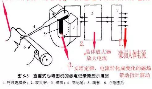 因?yàn)槊?xì)管靜電計(jì)的毛細(xì)血管不可能做的太細(xì),他無法測到更精確的電流,愛因托芬改進(jìn)了這個(gè)裝置,他利用通電的導(dǎo)體可以產(chǎn)生磁場的安培右手定律發(fā)明了----磁電式儀表。愛因托芬把提高靈敏度的任務(wù)完全交給超大的電磁鐵,而動圈以匝數(shù)最少,質(zhì)量最輕為目標(biāo)。最終的結(jié)果是1895年推出的弦線式電流計(jì)---看清楚還不是心電圖機(jī)。
