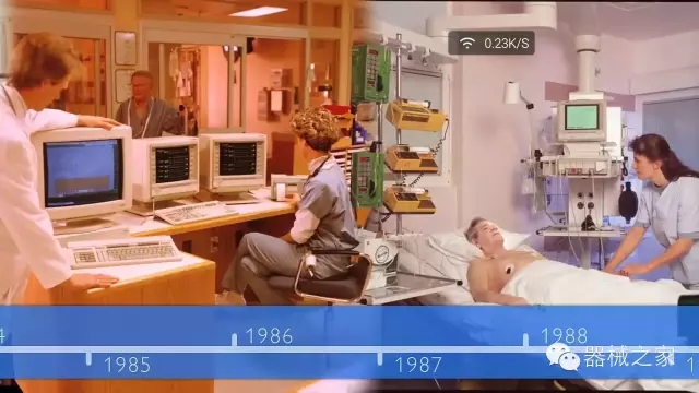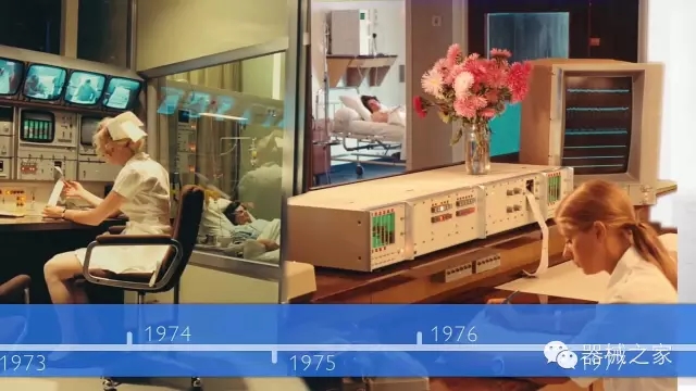 HP (后被飛利浦公司收購)病人監(jiān)護(hù)儀始于1973年,那時的中央站還有攝像頭能觀察到病人情況,好先進(jìn)啊