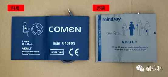 兩家都采用防水面料和薄膜氣囊。科曼顏色更深,不知道是不是因為深色耐臟。袖套看起來要厚點,不過摸起來也一樣柔軟。邁瑞是不經(jīng)臟的白色,拿起來會發(fā)現(xiàn)更柔軟?;蛟S是深色顯得明亮,對比之下,總覺得邁瑞的袖套看起來舊舊的。