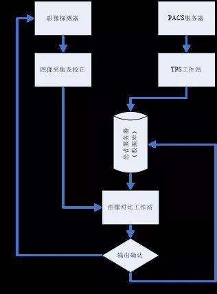 現(xiàn)在發(fā)展起來的實時成像系統(tǒng)正在向克服這兩個缺點的方向發(fā)展,即希望可以達(dá)到在治療開始前和治療過程進(jìn)行射野照片, 并與TPS傳到過來的DR圖像對比,通過影像的引導(dǎo)計算和減少由于擺位或器官移動造成的腫瘤位置變化后帶來的放療誤差。這就是大家所說的IGRT功能(見圖5)。