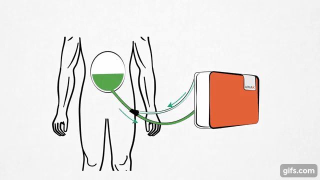 據(jù)報(bào)道,由AWAK科技公司研發(fā)的世界首個(gè)可穿戴、便攜式腹膜透析裝置,內(nèi)部使用了新研發(fā)的吸附技術(shù),體積小巧,重量不到2公斤,方便患者隨身攜帶,隨意走動(dòng),能夠進(jìn)行實(shí)時(shí)透析。