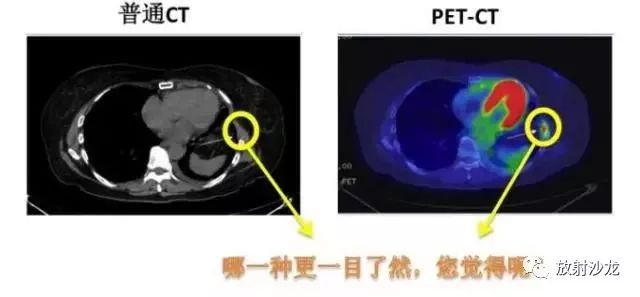 PET-CT等于PET+CT,包含PET(功能分子影像)與CT(解剖影像)的最優(yōu)化組合;即同時具有PET和CT的功能,但它絕不是二者功能的簡單疊加,因為PET與CT優(yōu)勢互補,“1+1>2”。PET-CT除了具備PET和CT各自的功能外,其獨有的融合圖像,將PET圖像與CT圖像融合, 可以同時反映病灶的代謝,可以早期診斷疾病的同時,明顯提高診斷的準(zhǔn)確性。